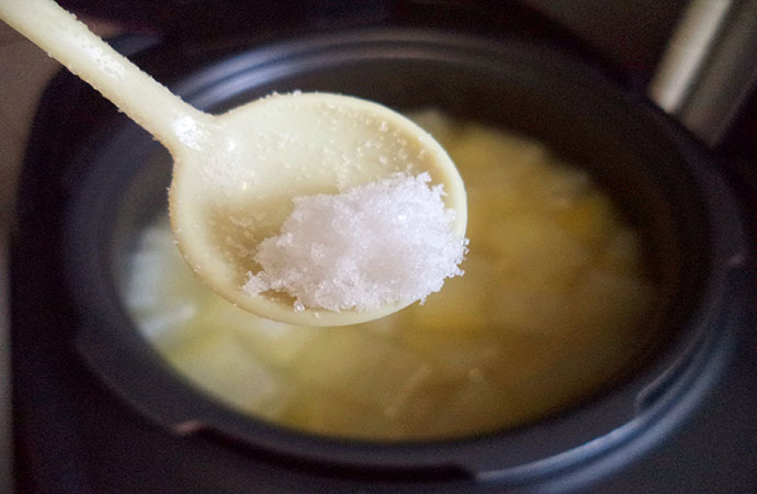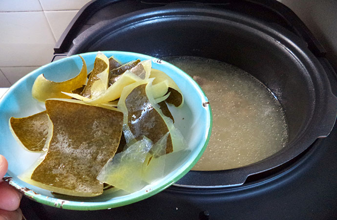 5.瓜皮可以撿出丟棄, 接著把冬瓜塊放入鍋中,再次啟動煲湯程序30分鐘
