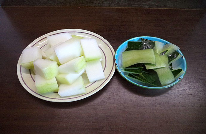 2.冬瓜切塊,冬瓜皮保留不要丟棄