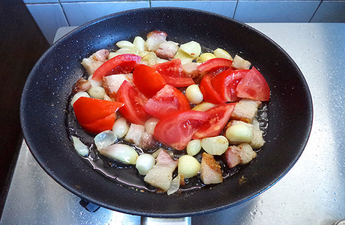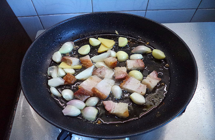 3.余下的油,煸香蔥姜蒜與燒肉