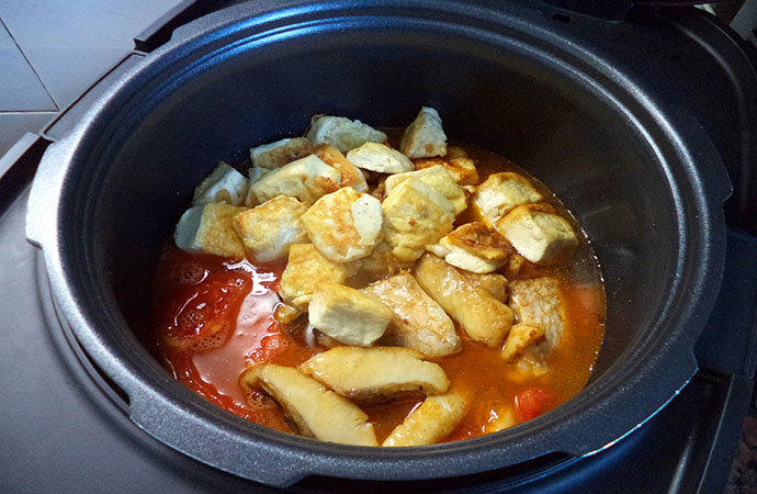5.倒入電壓力鍋中,加入之前煎好的豆腐與魚腩