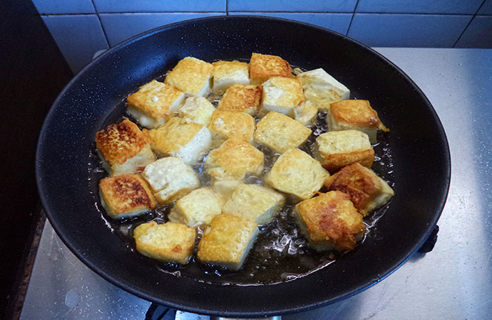 2.鍋中放油,下豆腐煎至兩面金黃后盛出