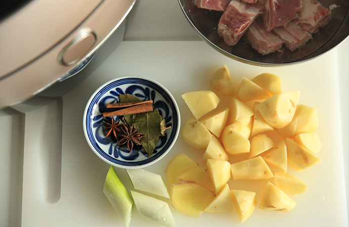 2.蘇泊爾電壓力鍋內(nèi)膽中先放入香料等食材