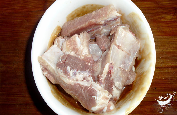 5.將排骨放進調料里拌勻放進冰箱冷藏一晚上