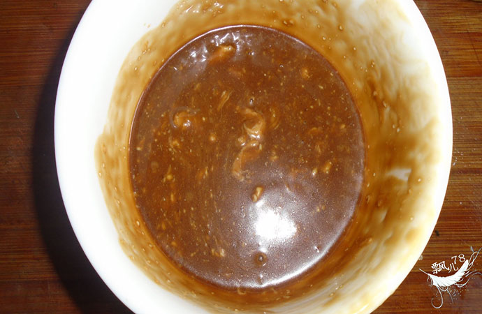 4.調料:生抽、蠔油、玉米淀粉、腐乳、花生醬、糖倒進容器里拌勻