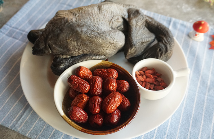 1. 準(zhǔn)備好需要的食材,以烏雞、枸杞和紅棗為主