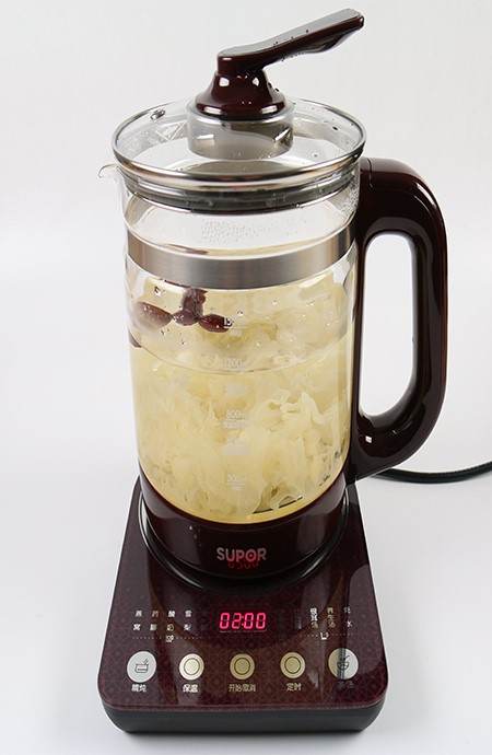 7. 蓋上蓋子,在茶湯功能鍵選擇銀耳湯,摁下開始鍵,開始煮。