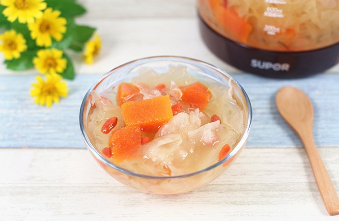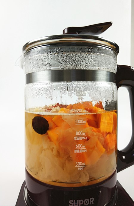 用銀耳、木瓜加上紅棗、枸杞一起燉煮,成就了一道簡單又美味美容圣品哦。這次用了蘇泊爾養生壺來煮銀耳湯,不用擔心溢鍋,小火慢煮,更能將銀耳的膠質煮出來,利于人體吸收。