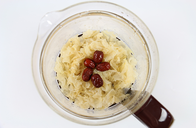 6. 把銀耳、紅棗放入養生壺里,加入1000ml的水。