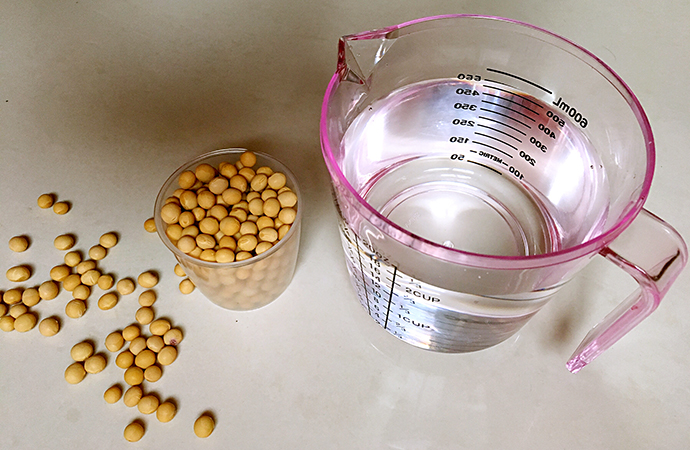 1、A豆?jié){:黃豆一杯85g清洗干凈,入純凈水600ml容器內(nèi),進行浸泡