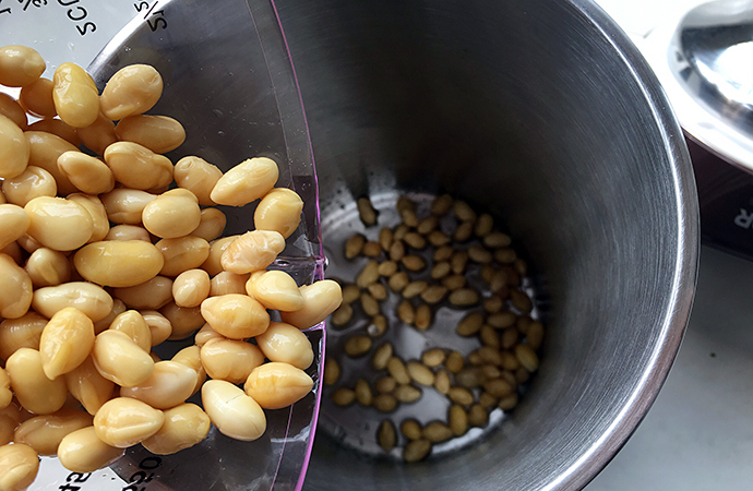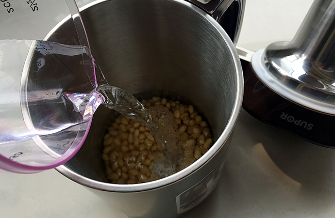 3、A豆?jié){:將泡發(fā)的黃豆入“蘇泊爾快速豆?jié){機”內(nèi)