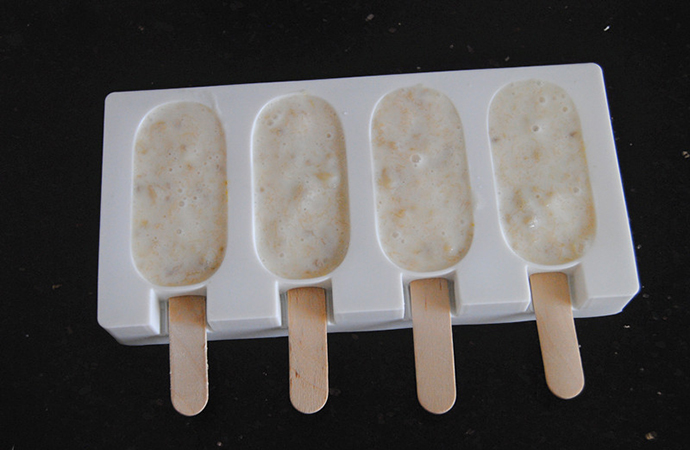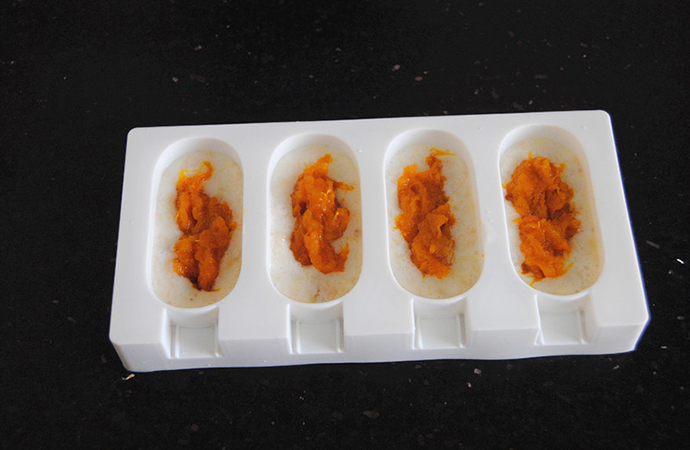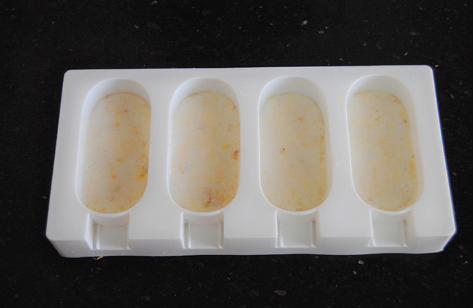 9. 準備好模具,倒入1/3的香蕉酸奶