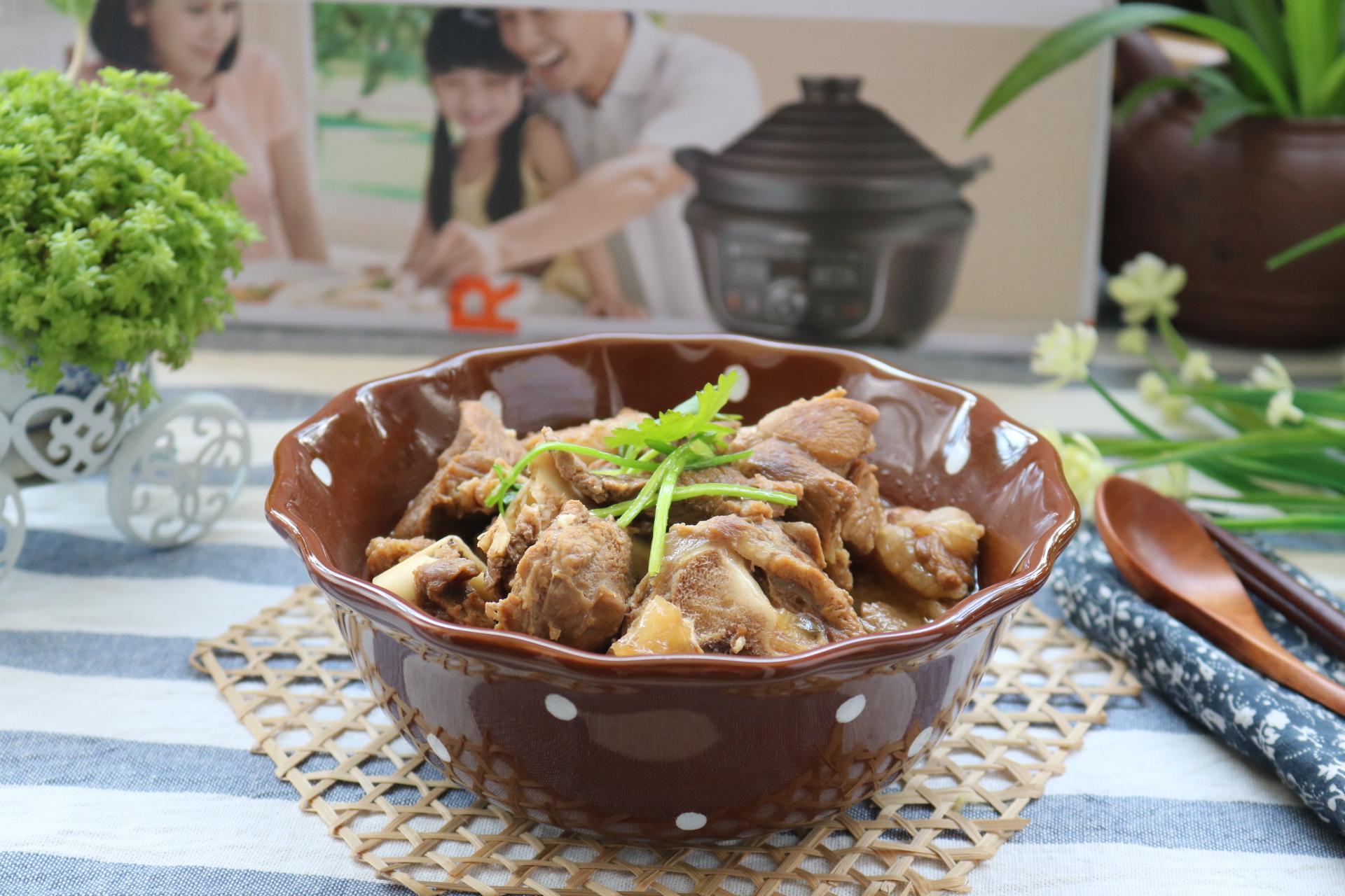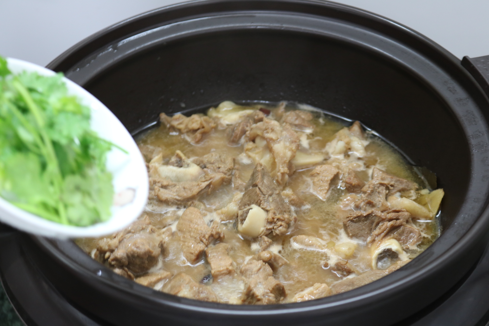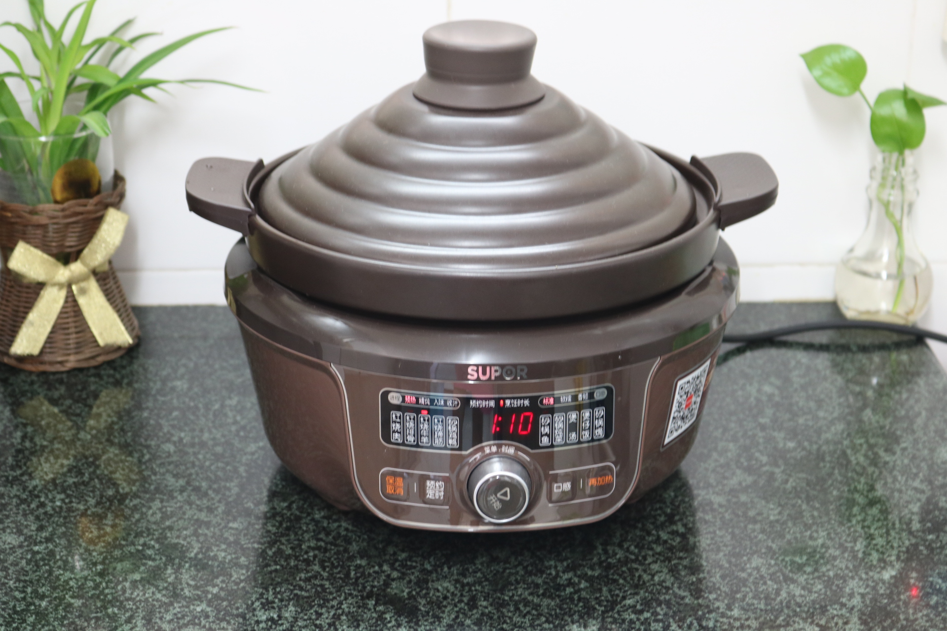 13. 遮上鍋蓋,接通電源,選擇紅燒羊肉功能鍵,時(shí)間為1小時(shí)10分,這時(shí)全程交給電砂鍋烹飪了