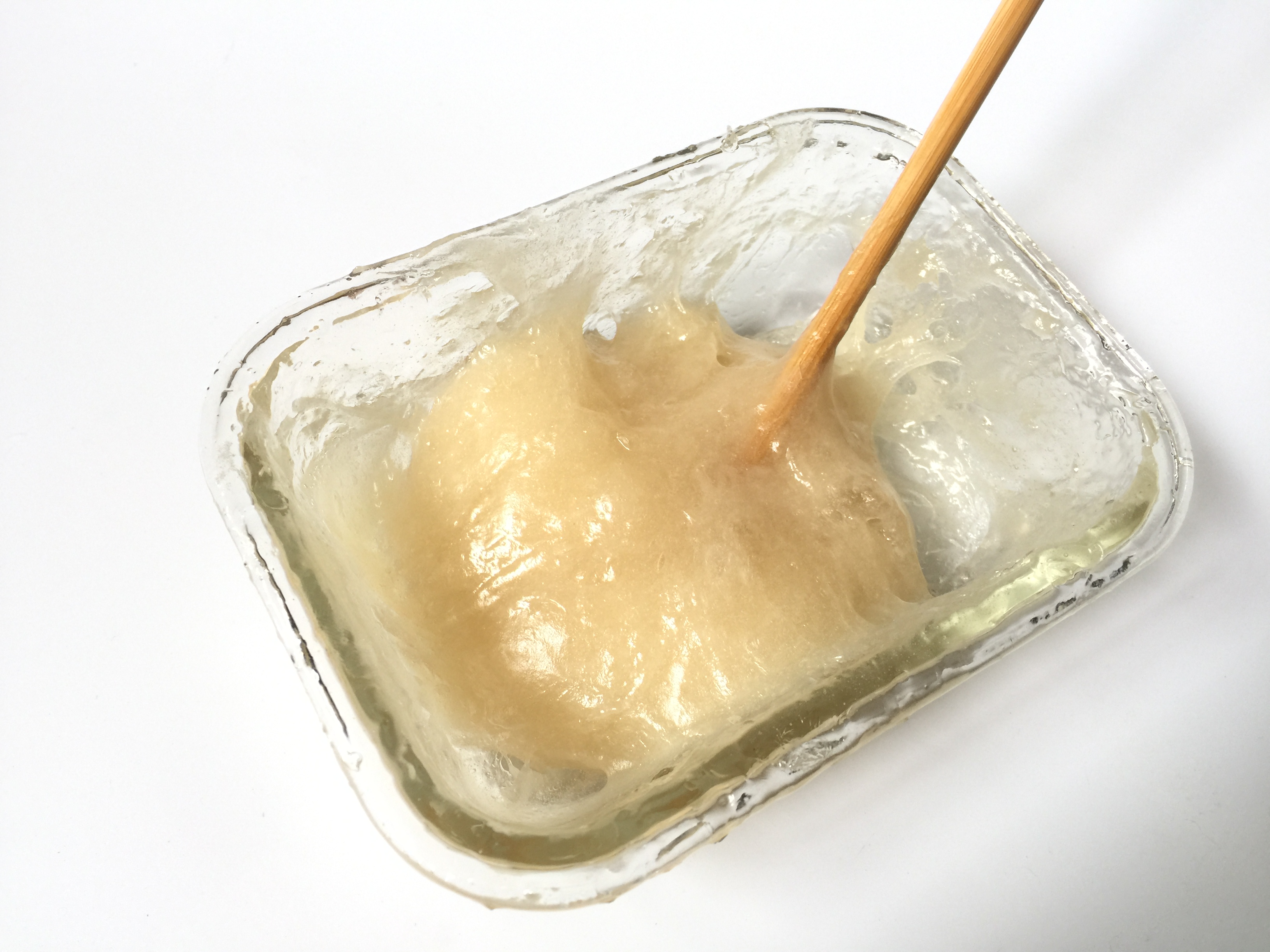 7、 糖漿加50克水燒開,與水晶粉拌勻后上鍋蒸20分鐘(粉糊變得透明既成熟了,這里不要過度攪拌,不然會有很多小氣泡)