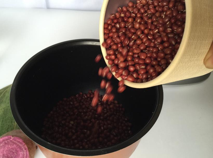 1、 先來制作豆沙,紅豆洗干凈,煮熟