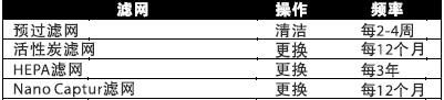 A: 空氣凈化器濾網清洗跟更換頻率根據使用持續時間及工作環境不同而有所不同,下表僅供參考: