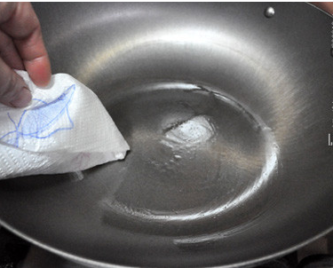 建議下鍋前,用生姜涂抹下鍋具,放一點(diǎn)鹽