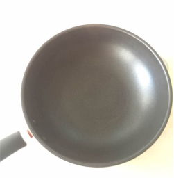 平底鍋底部受熱后發(fā)生膨脹,會產生一定量的內凸,底部形成球面.在設計時我們要求上凸高度在3MM左右是正常;用時可旋轉鍋具、翻動食物來達到鍋內油量均衡